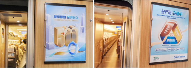 依托高铁的强大客流和独特场景优势,新华保险创新打造“沉浸式媒体展示+首发仪式+车上互动”立体化传播新范式。在高铁这一沉浸式“品牌移动展厅”中,车身彩贴、头片、桌贴、品牌天幕、海报等全媒体载体,全方位、多维度展示了新华保险的品牌实力与产品服务优势。公司还联动哈尔滨、西安、杭州、石家庄、深圳、上海、郑州、北京等核心城市,开展车站首发仪式和车上打卡互动体验活动。